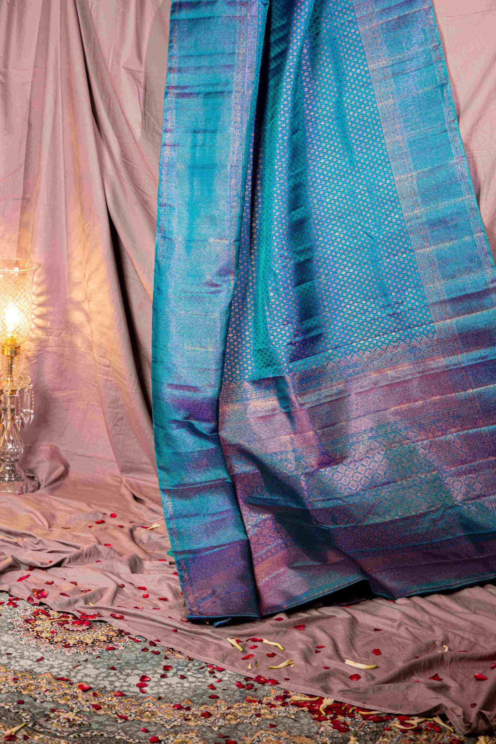 Nude powder pink peach chanderi multichrome sequin kalidar gown